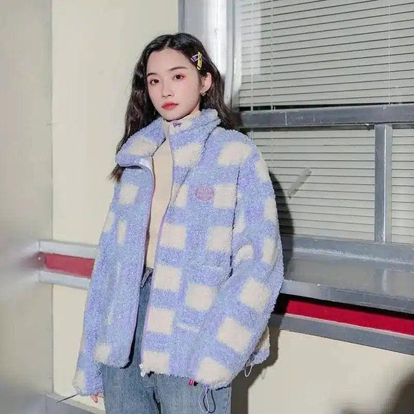 Chaqueta a cuadros de terciopelo de cordero para mujer