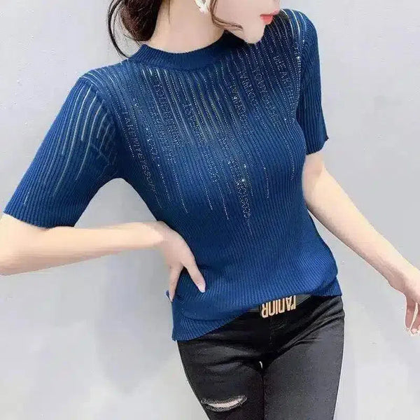 Top de punto acanalado de manga corta para mujer