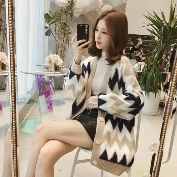 - Detalles de diseño: Estampado geométrico atrevido, diseño de color en contraste, cierre de botones delantero