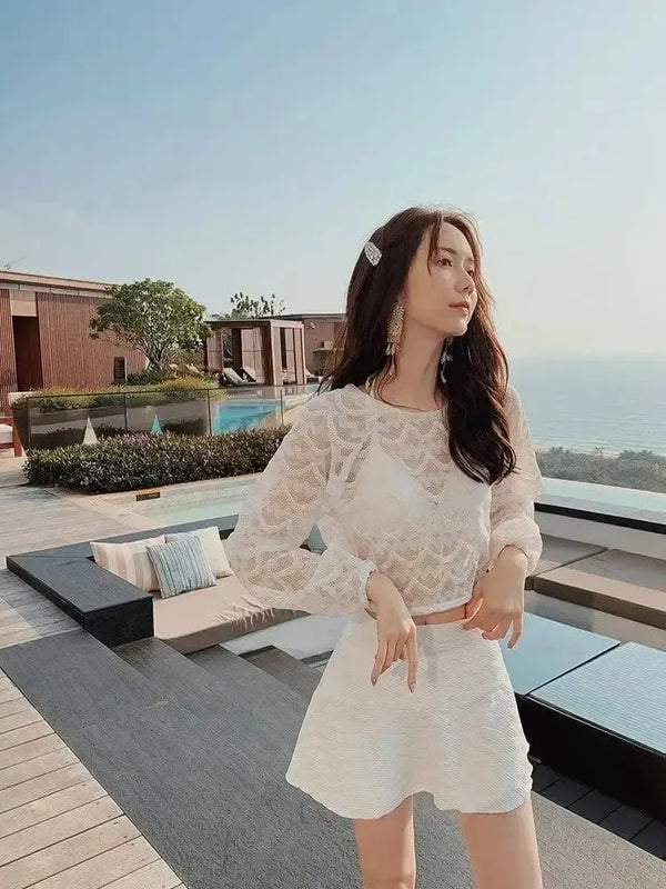 Descripción del producto: Bañador de encaje de tres piezas para mujer