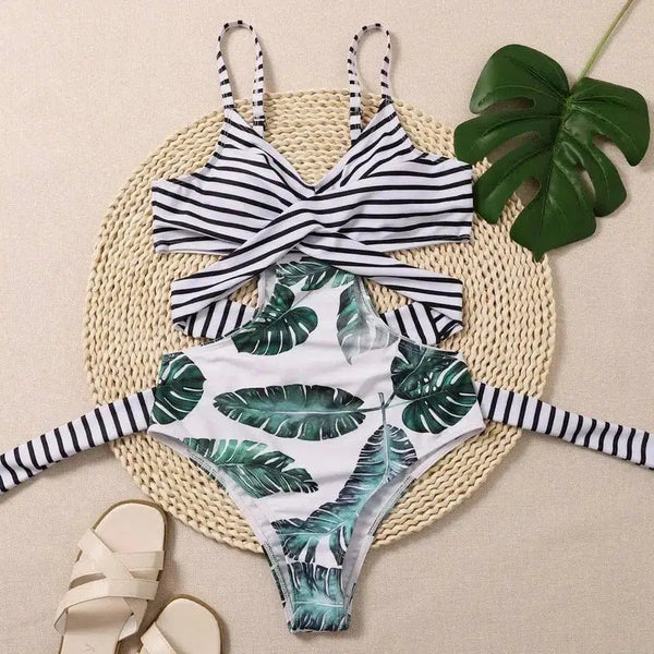 Bikini con estampado de hojas Bikini europeo y americano