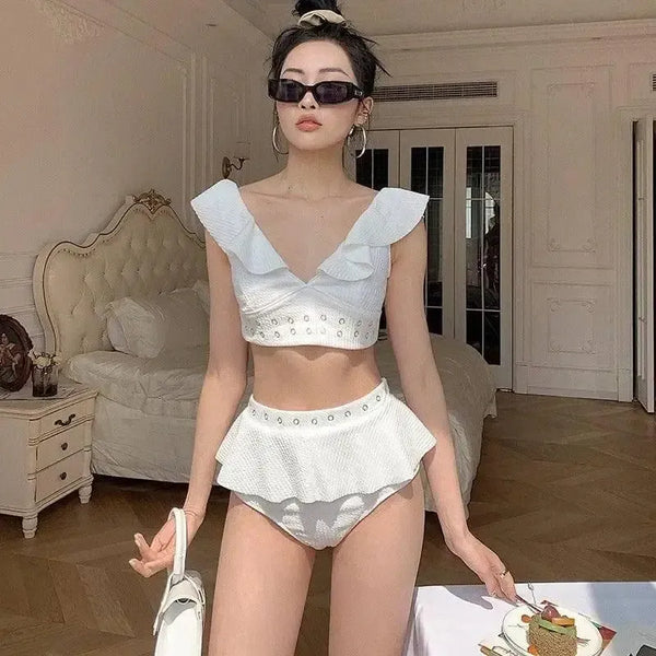 Bikini fruncido fruncido sin espalda cintura alta Split