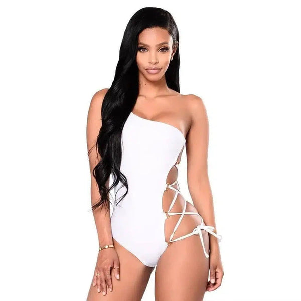 Descripción del producto: Traje de baño bikini de un hombro con tirante cruzado de aro