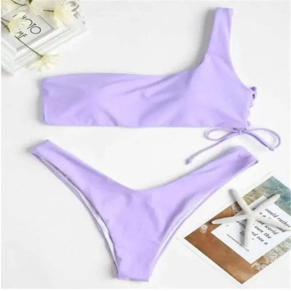 Descripción del producto: Bikini de traje de baño de un solo hombro de color sólido dividido