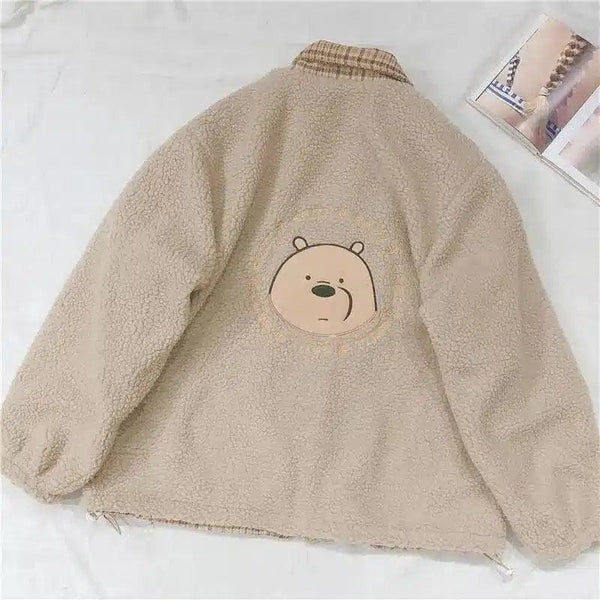 Abrigo de piel de cordero a cuadros con bordado de oso