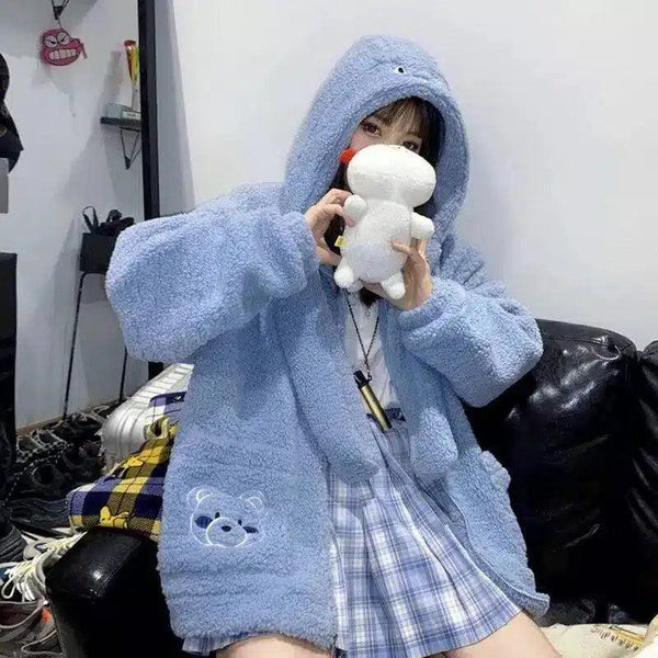 Oso de lana de cordero abrigo de las mujeres de invierno de felpa suelta Orejas de felpa
