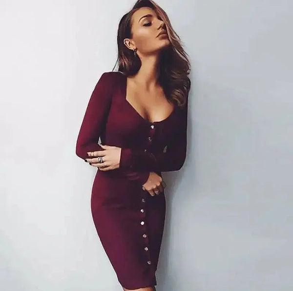 Primavera Mujer Bodycon Slim Manga Larga Fiesta Cocktail Pencil