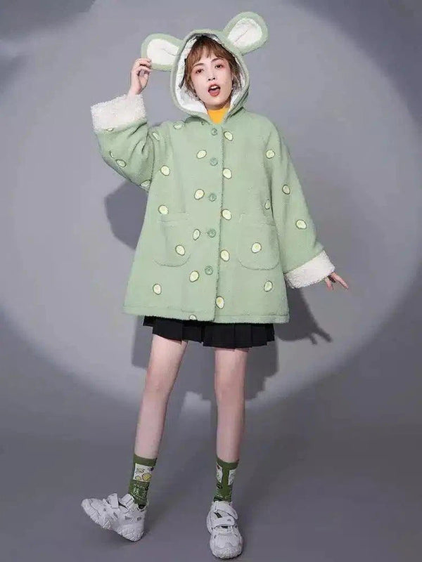 Abrigo de lana de cordero con capucha y estampado de dibujos animados