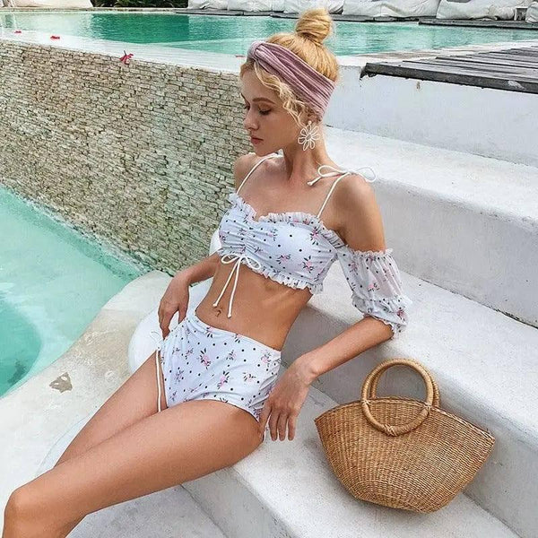 Descripción del producto: Bikini con cordón con volantes de lunares estampados