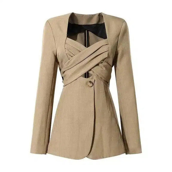- Estilo de escote u hombros: Escote cruzado asimétrico .