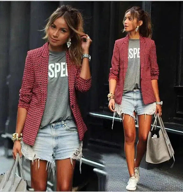 Conjunto casual de blazer y pantalón corto vaquero para mujer