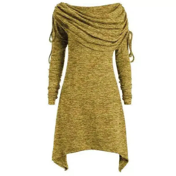 Incorpora este elegante y único Vestido de cuello drapeado asimétrico a tu armario para disfrutar de una mezcla de comodidad
