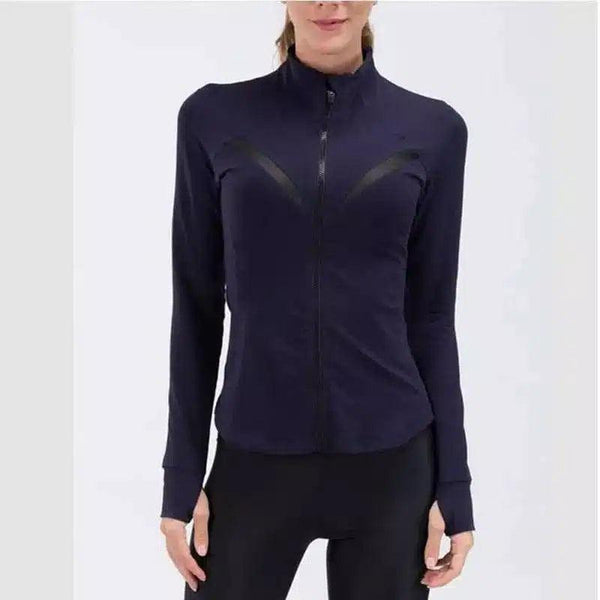 Slim Fit Cremallera Stand Cuello Ejercicio Yoga Traje Chaqueta