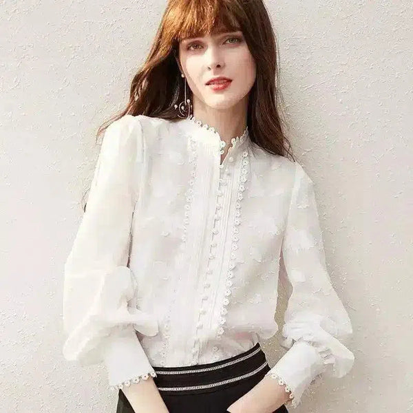 - Cierre de botones decorativo - Equipada con una hilera de botones ornamentados, esta blusa presenta un sistema de cierre único que realza su estética general.