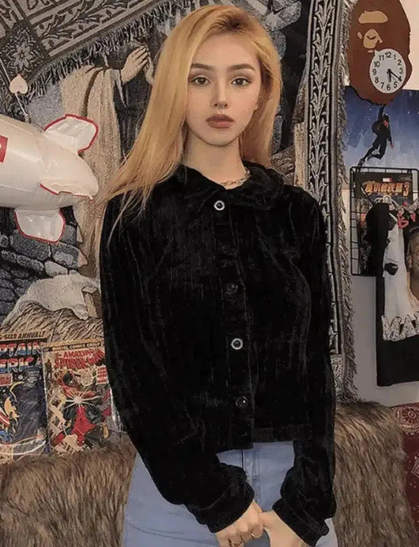 Chaqueta informal abotonada de terciopelo para mujer
