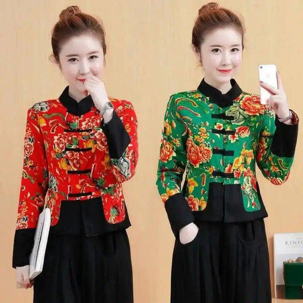 Colores disponibles: Vibrantes opciones en rojo y verde con intrincados diseños florales.