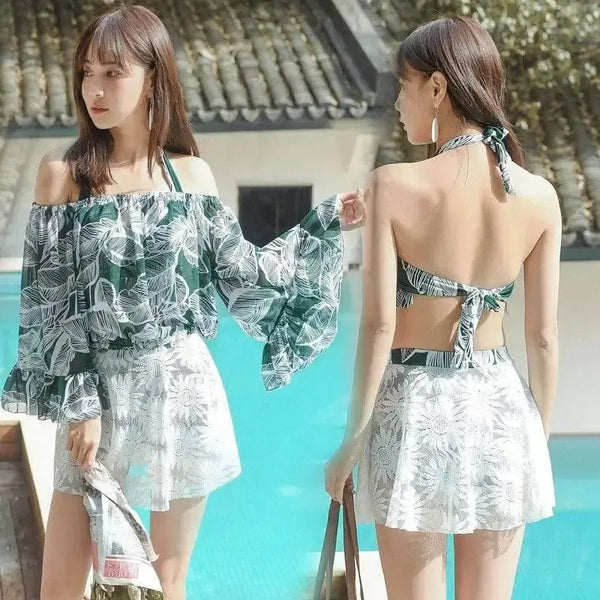 Bañador de tres piezas para mujer fruncido para cubrir el vientre