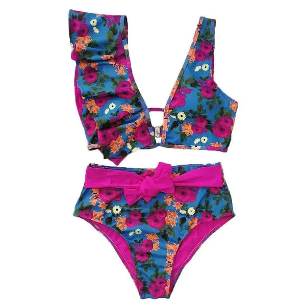 - Tipo de producto: Traje de baño bikini de cintura alta con volantes asimétricos .