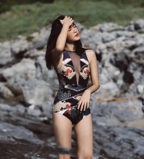 - Diseño: Elegante bañador de una pieza inspirado en motivos culturales del sudeste asiático.