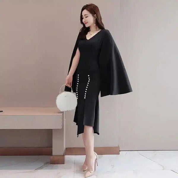 - Tipo de prenda: Vestido de mujer con detalle de capa asimétrica .