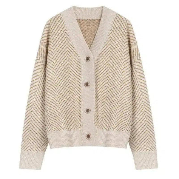 Cuello en V Diamond Striped Lazy Style Literary Knit Cardigan
