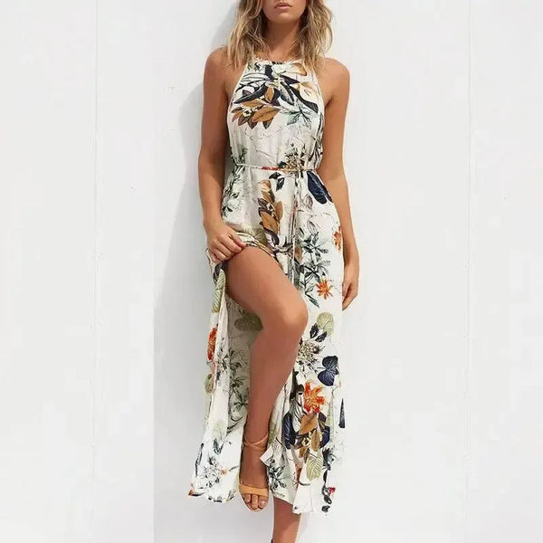 Vestido largo de playa estampado de algodón con fular europeo y americano