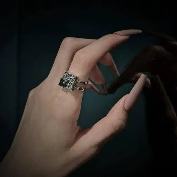 Vintage plata cuadrado verde oscuro diamante S925 Sterling