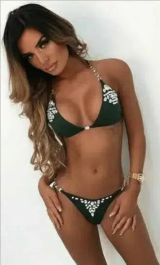 Conjunto de bikini para mujer con purpurina y pedrería Sujetador push up Halter