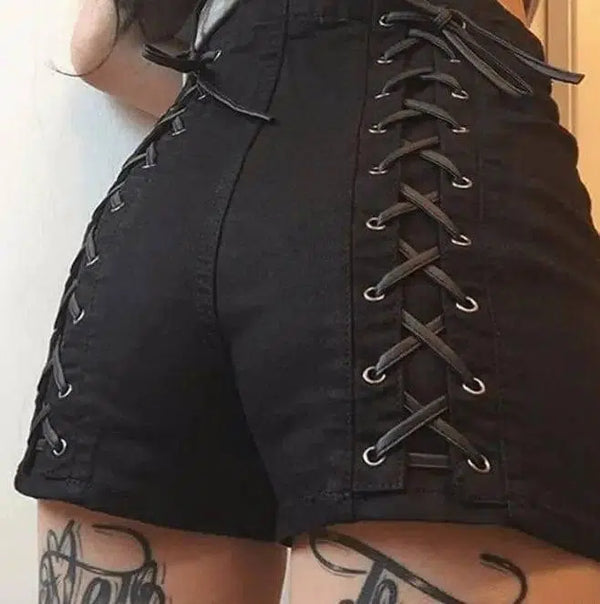 Pantalones Cortos Mujer Sólidos Criss Cross Bandage REGULAR Cintura Alta
