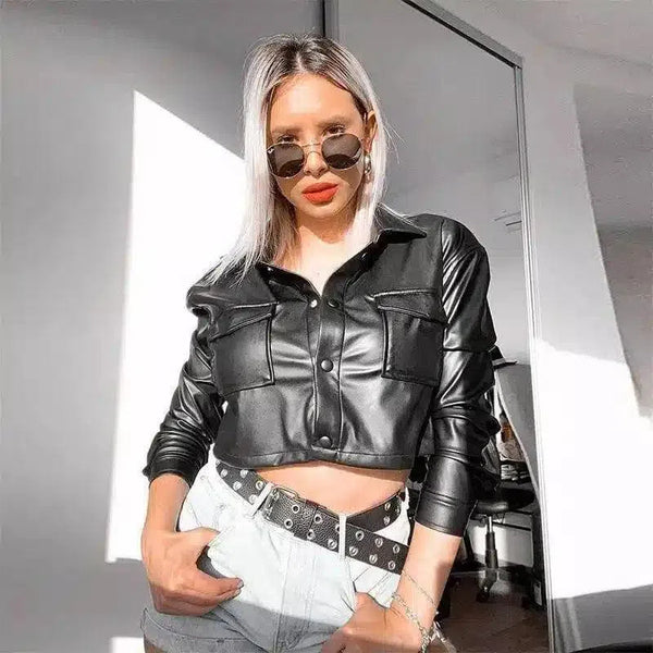 - Tipo de prenda: Chaqueta de cuero cropped .