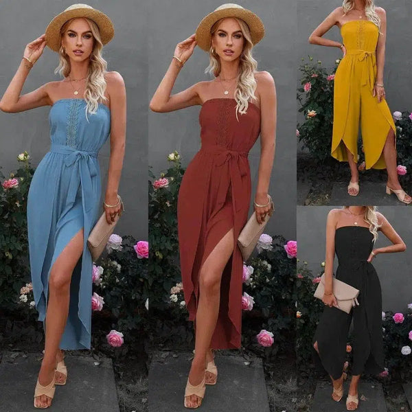 Mujeres Verano Noveno suelta Jumpsuit Pantalones de pierna ancha