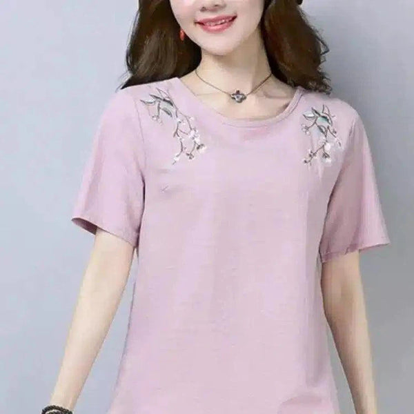 Camiseta casual bordada para mujer