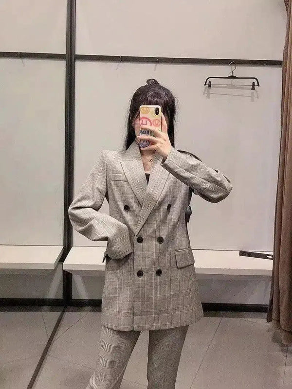 - Corte o elasticidad: Corte estructurado con un diseño de doble botonadura