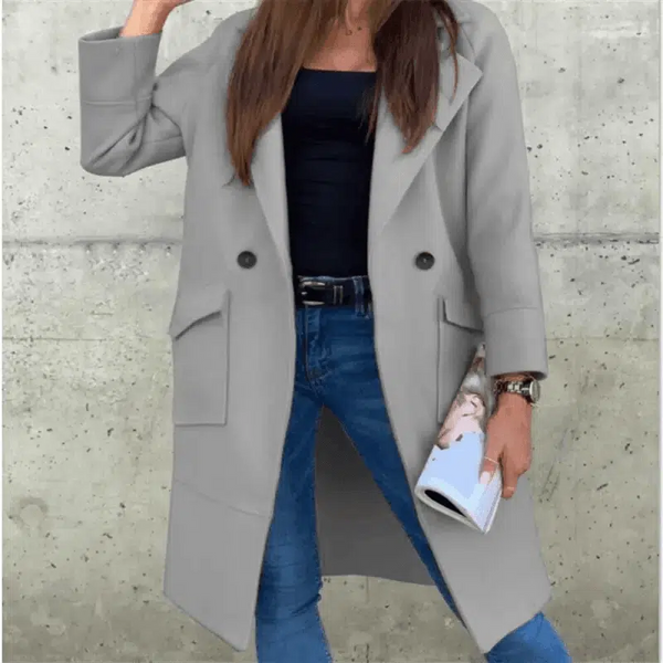 Otoño E Invierno Color Sólido Cuello De Traje De Manga Larga