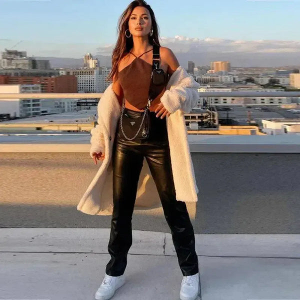Descripción del producto: Pantalones de cuero elástico para mujer