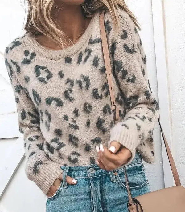 Jersey Jersey de punto Jersey estampado leopardo Mujer