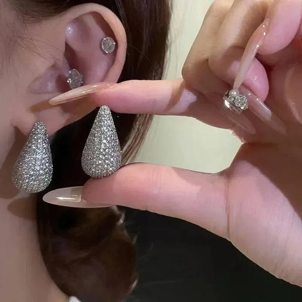 Joyería de moda Vintage Chunky Cúpula Pendientes de gota para las mujeres de acero inoxidable brillante grueso circonio con incrustaciones de lágrima Pendientes Pendientes de las mujeres