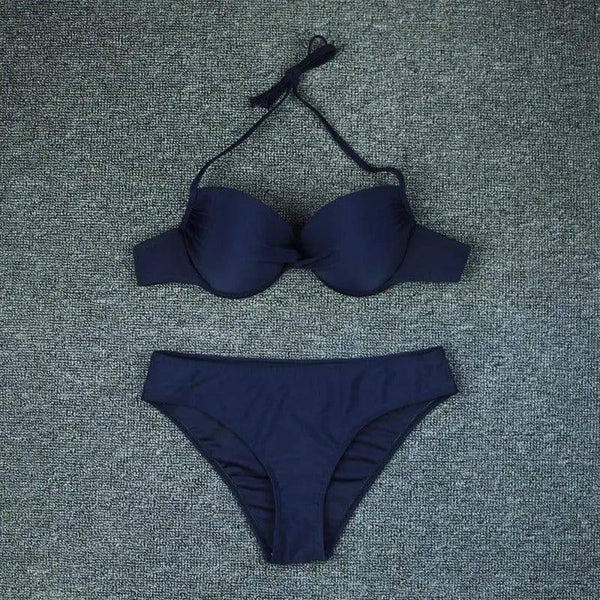 Descripción del producto: Traje de baño de bikini sin espalda de bolsa dura de color sólido para mujer