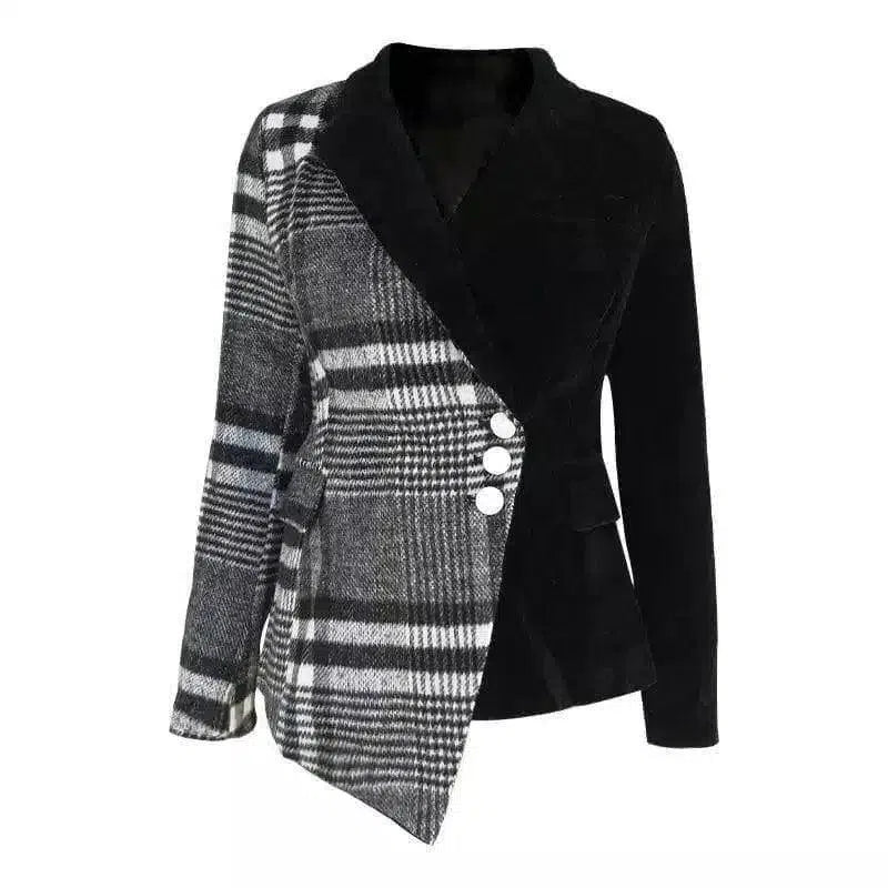 Blazer asimétrico de mujer a cuadros con botones