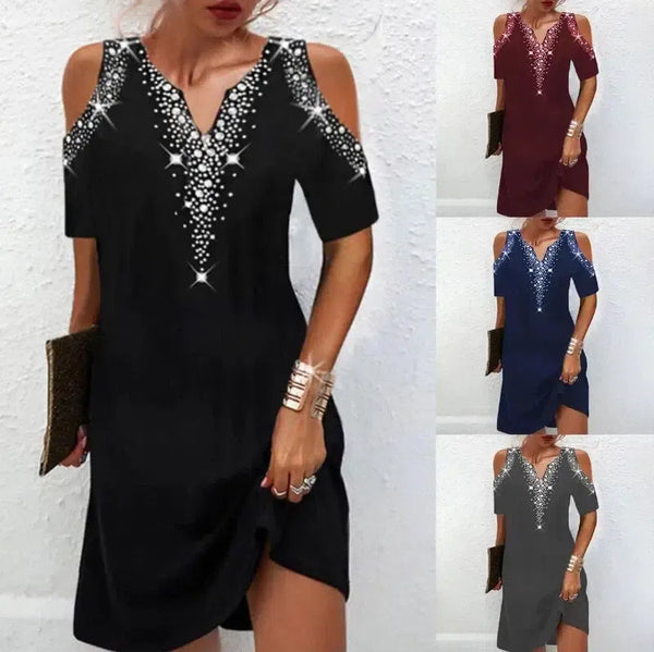 Vestido de manga corta estampado con cuello en V y hombros descubiertos para mujer