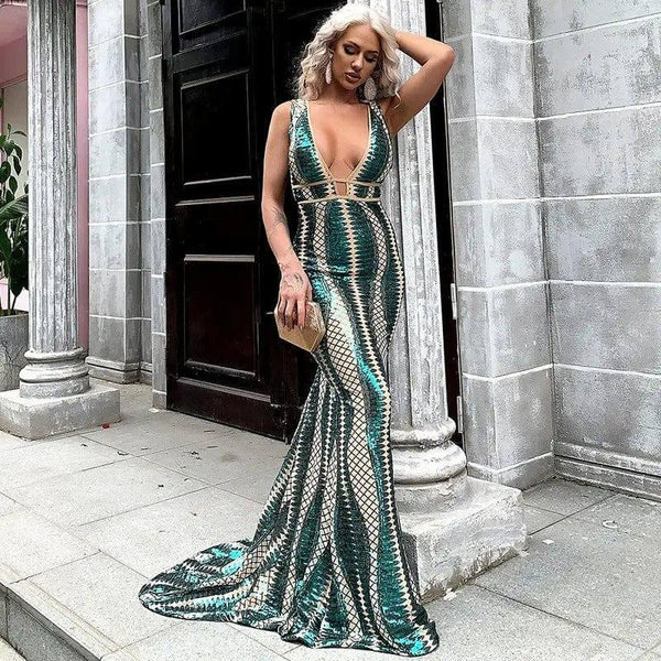 Descripción del producto: Vestido de noche de rayas irregulares de cola larga con tirantes