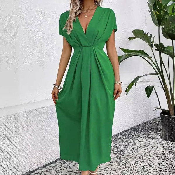 Color Sólido Profundo V Hombro Doblado Cintura Elástica