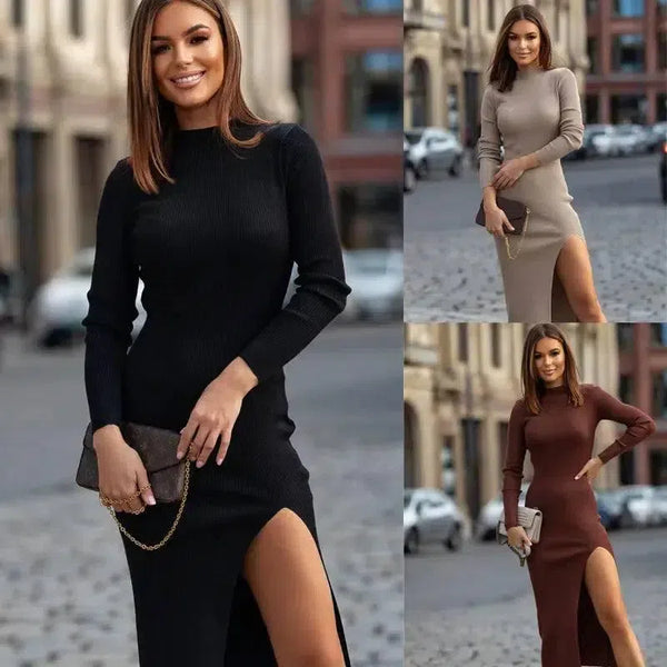 Otoño e Invierno Vestidos Cuello Redondo Slim Color Sólido
