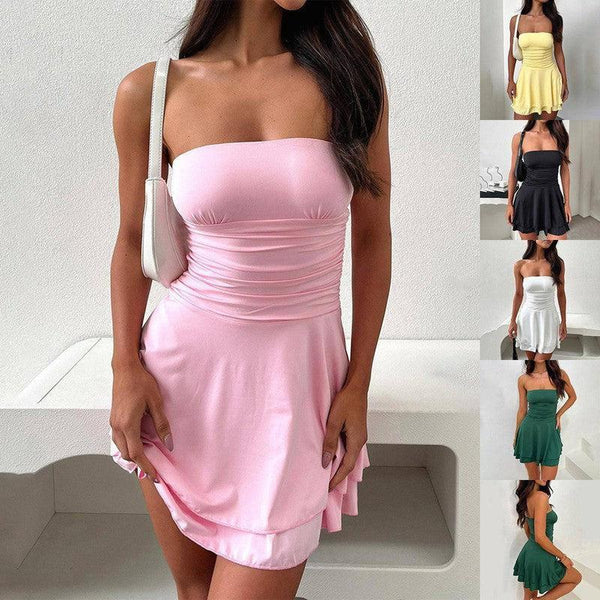 Vestido corto con top de tubo Y2K Vestidos ajustados plisados de verano